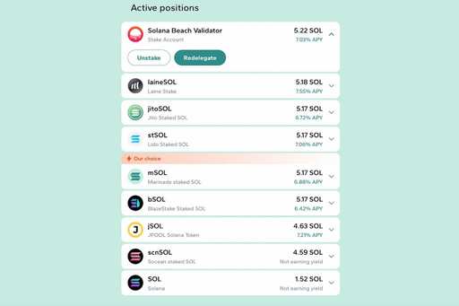 - Native Staking: Im Gegensatz zum Liquid Staking stellt die Native-Option sicher, dass Sie die vollständige Kontrolle über Ihren Einsatz behalten, ähnlich wie beim Staking mit einem einzelnen Validator.