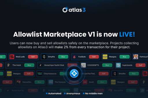 Blocksmith Labs has unveiled Atlas3, an innovative marketplace that aims to revolutionize the way users buy and sell allowlists. As the first frictionless, cross-chain, automated, and anonymous marketplace of its kind, Atlas3 aims to bring increased ease of use to allowlist transactions.