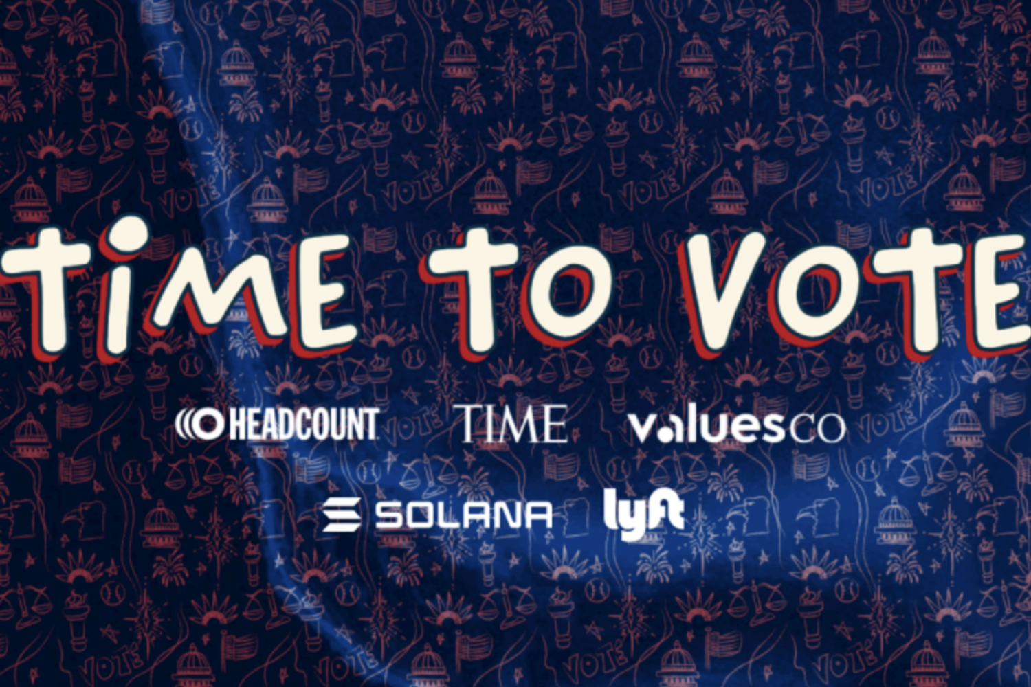 In samenwerking met meer dan 35 beroemde makers stimuleert de Time to Vote-campagne deelnemers om zich te registreren om te stemmen, een stemplan te maken en hun verkiezingsreis te delen via sociale media en de ValuesCo app.